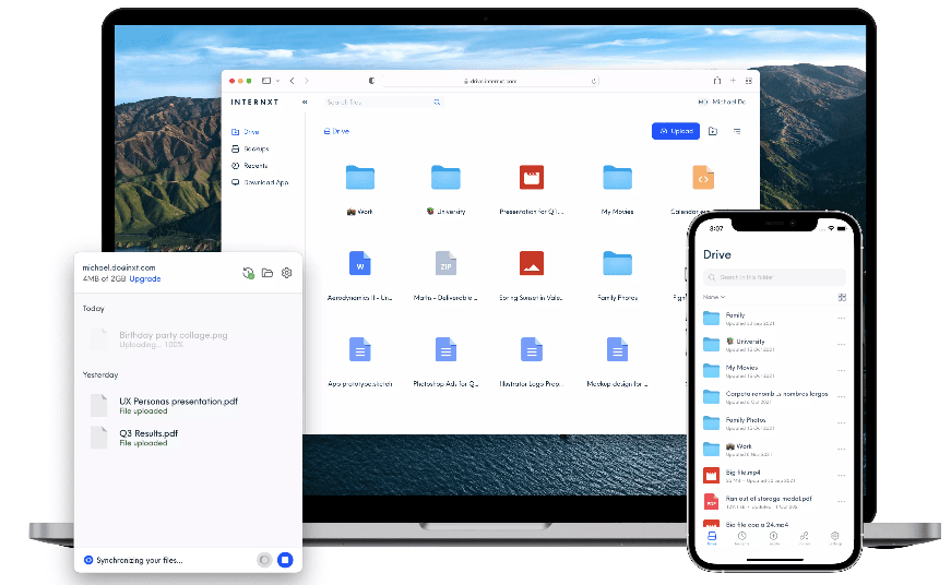 Internxt is a safe cloud storage service that encrypts the uploaded information for secure file sharing. It lets you backup and share files, photos and documents without putting your data at risk.